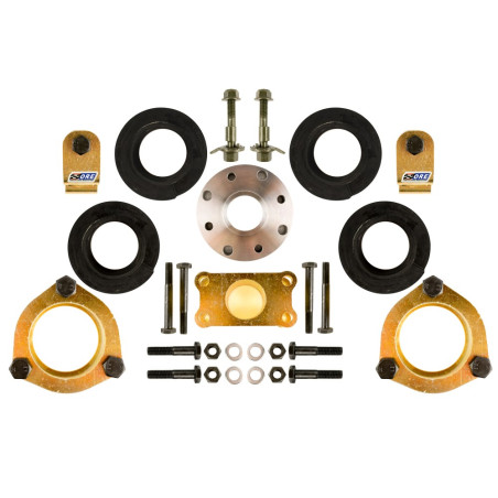 Sada se skládá ze 4 duralových podložek nad pružiny a navíc ocelové prodloužení horního uložení na přední nápravě. Dále prodloužení zadních tlumičů, prodloužení uchycení zadního V-ramena (bumerang) a prodloužení kardanu.